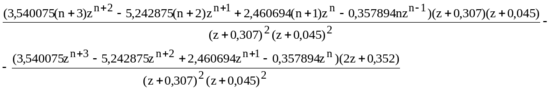 1-го порядка: z=-0,307 и z=-0,045. Полюс 2-го z=1. Для вычисления переходной функции необходимо вычислить производную следующей функции