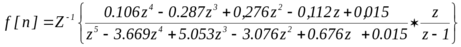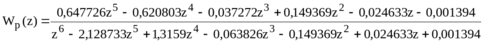 y[k]=0,647726x[k-1] –0,620803x[k-2] –0,037272x[k-3] +0,149369x[k-4] –0,024633x[k-2] –0,001394x[k-2] +1,481007y[k-1] –0,695097y[k-2]+ +0,101098y[k-3];
