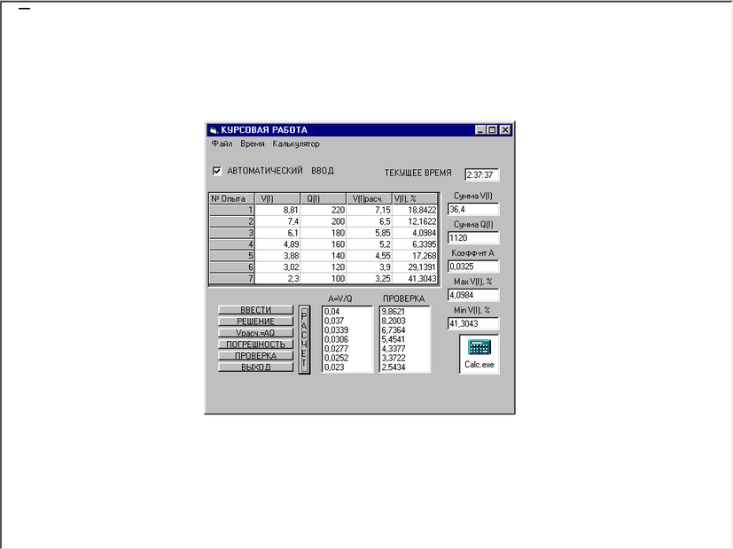| V(I) | Q(I) | V(I) расч | V(I), % |