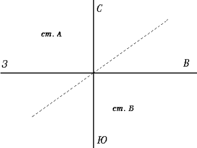 о заданию направление трассы Север – Юг значит ОП1 – станция «А», ОП2 – станция «Б».