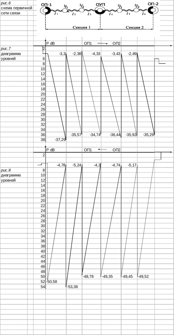 Согласно расчётов уровней приёма и передачи построим диаграмму уровней (рис.7 и рис.8)