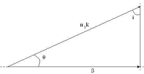 . В случае распространения света внутри волновода направление распространения света совпадает с направлением проекции β волнового вектора k, на ось волновода:
