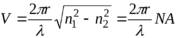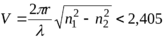 Введем величину, называемую нормированной частотой V, которая связывает структурные параметры ОВ и длину световой волны, и определяемую следующим выражением: