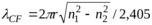 Минимальная длина волны, при которой в ОВ распространяется фундаментальная мода, называется волоконной длиной волны отсечки. Значение определяется из последнего выражения как: