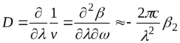 Дисперсию в оптических волокнах, как было сказано выше, принято характеризовать коэффициентом хроматической дисперсии или удельной хроматической дисперсией D, измеряемом в пс/(нм·км). Значение коэффициента D связано с коэффициентом