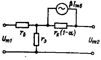 Рис. 6-2. Эквивалентная Т-образная схема транзистора, включенного по схеме ОЭ