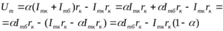 представляет собой ЭДС, а второе слагаемое есть падение напряжения от тока