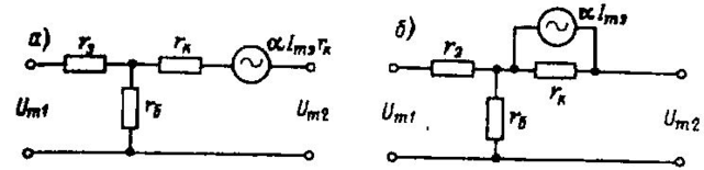 В схеме на рис. 6-1,а усиленное переменное напряжение на выходе получается от некоторого эквивалентного генератора, включенного в цепь коллектора; ЭДС этого генератора пропорциональна току эмиттера