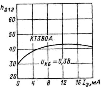 Рис 12-4 Зависимость статического коэффициента передачи тока от тока эмиттера