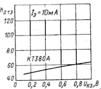 Рис 12-3 Зависимость статического коэффициента передачи тока от напряжения коллектор-эмиттер