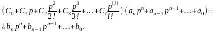 Приравняв слагаемые, имеющие одинаковые степени р в правой и левой частях (11), получим: