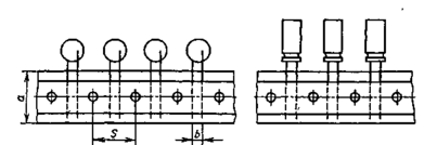 ИЭТ 3-й, 4-й, и 8-й групп с проволочными выводами, а также транзисторы поставляются вклеенными в однорядную перфорированную ленту (рис. 1). Ширина ленты а - 18 мм. Шаг вклейки (шаг перфорированных отверстий) s в зависимости от размера корпуса ИЭТ составляет 12>7 или 15 мм. Расстояние между выводами ИЭТ b равно 2,5 или 5 мм.