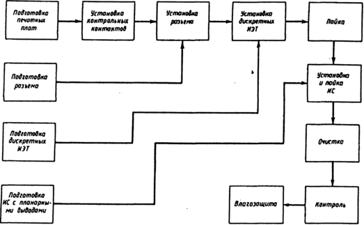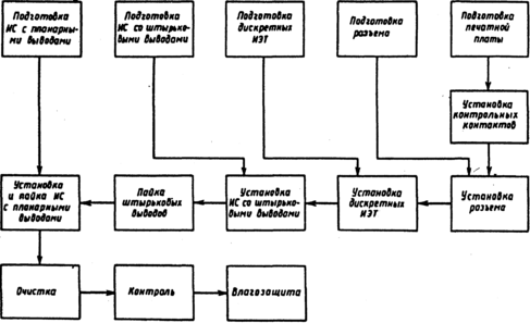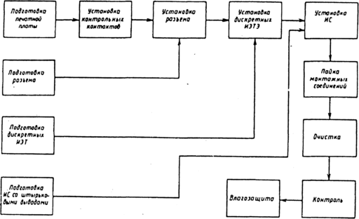 Рис. 2 - Схема технологического процесса сборки ЭМ-1 на ИС со штырьковыми выводами