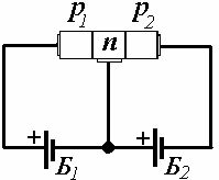 Рис. 12. Вмикання кристала напівпровідника з двома переходами в електричне коло