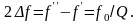 Для расчета добротности изделия необходимо после настройки на резонанс измерить амплитуду колебаний, затем уменьшать частоту до тех пор, пока амплитуда колебаний не станет равной 0,7 амплитуды при резонансе. Полученная частота будет соответствовать частоте f'. Аналогичные действия следует провести, увеличивая частоту до значения f". Тогда, вычислив 2Δf по (9) и зная f0, можно по (10) найти добротность Q.
