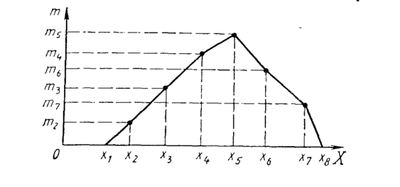 Для наглядного представления тенденции изменения значений исследуемых ПКГ применяют графические I коды, не требующие сложных вычислений. Наиболее распространенными графиками, к которым прибегают при испытаниях ЭС, являются полигоны, гистограммы, кумуляты, огивы и поля корреляции. Полигоны (рисунок 1) служат как правило, для изображения дискретных значений ПКГ, но могут применяться и для непрерывных (интервальный) изменений параметра. В этом случае ординаты, пропорциональные частотам интервалов восставляют перпендикулярно оси абсцисс в точках соответствующих серединам данных интервалов.