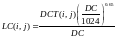 где DCT(i,j) – матрица размером 8x8, являющая результатом дискретного косинусного преобразования исходного блока, DC – это средняя яркость данного блока перед преобразованием, имеющая нулевую несущую частоту, т.е. DC = DCT(0,0).