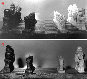Когда вы используете обычные линзы для измерения трехмерных объектов, в результате получаем изображение искаженное дисторсией. Изменение увеличения с расстоянием в обычных изображающих системах настолько фундаментально, что люди обычно считают, что так и должно быть. Кроме всего, наши глаза являются типичными традиционными изображающими системами. Мы принимаем, что объект расположенный дальше кажется меньшим, чем тот же объект расположенный рядом. Изображение шахматной доски на рисунке иллюстрирует этот эффект, называемый перспективой. [12]