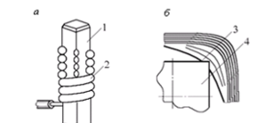 Накрутка — это соединение оголенного провода со штыревым выводом, имеющим острые кромки, путем навивки провода на вывод с определенным усилием. При этом кромки штыря, частично деформируясь, врезаются в провод, разрушая на нем оксидную пленку и образуя газонепроницаемое соединение. Концентрация напряжений в зоне контакта и значительное давление (до 15—20 МПа) обусловливают взаимную диффузию металлов, что способствует повышению надежности соединений.