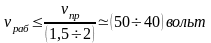 Пример: требуется определить рабочее напряжение питания радиоэлектронного блока на печатной плате, работающего при Р=7,7 мм рт.ст. (31км высоты) и температуре окружающего воздуха tном=+70C. При этом известно что рабочая частота блока равна 5МГц, а зазоры между печатными проводниками составляют порядка 1мм. Из справочных данных определяем электрическую прочность воздуха при промежутке 1мм для нормальных условий Е0=4кВ/мм. Согласно данным таблицы 3 определяем электрическую прочность при пониженном давлении Е=4*0,03=120В/мм. Пробивное напряжение при этом в зазоре в 1мм равно 120 вольт. Как следу из графика рис.6 величина этого напряжения при частоте 5МГц должна быть уменьшена на 25%, т.е. f=0.75*0=0.75*120=90 вольт. Далее учтем снижение напряжения поверхностного пробоя от окружающей температуры согласно данным табл.4, т.е. пр=f*Kt=90*0.85=76 вольт. Поскольку величина рабочего напряжения обычно выбирается в 1,5-2 раза меньше, то в нашем случае в итоге получаем