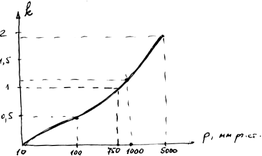 Уменьшение конвективной теплопередачи определяется из графика (рис. 5), где величина коэффициента k представляет собой отношение коэффициентов теплоотдачи при заданном и нормальном давлениях: