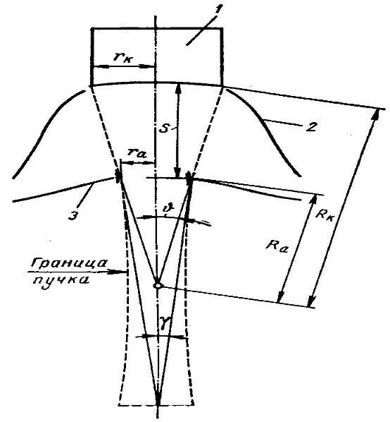к границе пучка. Для излучателей, образующих сходящиеся пучки, условия на границе катода те же, что и для параллельного пучка. Поэтому все виды катодного электрода должны делаться такими, чтобы у самого катода угол между касательной к поверхности электрода и границей пучка был равен