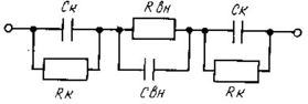 Для ориентировки укажем, что, например, при небольшой площади электродов (несколько квадратных сантиметров) и незначительной силе тока (постоянная составляющая-доли миллиампер) для эквивалентной схемы мощно принять следующий порядок величин Rк: 1000-2000 Ом, Ск: 0.03-0.05мкФ, Rвн: 500-1000 Ом и Свн: 0.01-0.02 мкФ.