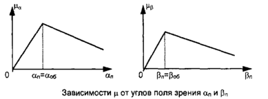 угловой размер зоны чувствительности соответственно в горизонтальной и вертикальной плоскостях;