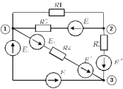 Представим, что мы имели уравнения для схемы рис. 2.8.6. В схеме рис. 2.8.7 осталось столько же ветвей и столько же узлов, структура схемы такая же, следовательно, такими же останутся уравнения по I закону Кирхгофа. Уравнения по II закону Кирхгофа изменятся, т.к. в правой части этих уравнений появятся дополнительные источники ЭДС,