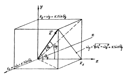 Рис. 2. Проекции волнового вектора на координатные оси.
