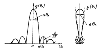 - угол между направлением распространения плоской радиоволны и осью z, т.е. угол отклонения (дифракции) электромагнитных волн от направления, перпендикулярного плоскости пространственного сигнала.