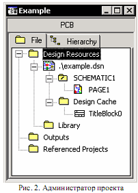 Всі ресурси будь-якого проекту OrCAD Capture знаходяться в Адміністраторові проекту (рис.2).
