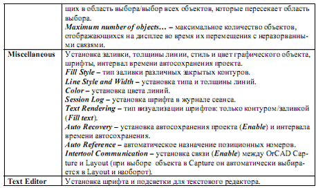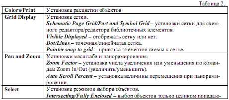 2. Preference – задаються параметри схеми, які ініціалізувалися при кожному запуску ORCAD Capture (табл.2).