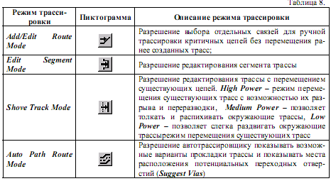 Route Mode – вибір режиму трасування (таблиця. 8);