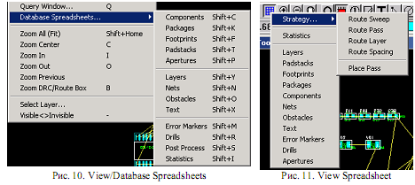 Налаштування приватних стратегій трасувальника OrCAD Layout здійснюється по командах меню Route/Strategies і за допомогою меню швидкого доступу View Spreadsheet/Strategies: