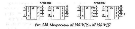 Интересно отметить, что одноименные входы и выходы микросхем К176ИД2, К176ИДЗ, 564ИД4,564ИД5 разведены на выводы с одинаковыми номерами.