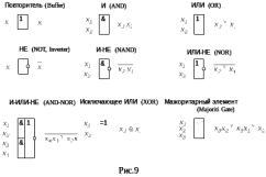 Функционально полная система элементов – система позволяющая реализовать любые, сколь угодно сложные ПФ путем представления их через типовые (базисные) функции. Физически полная система элементов – система, обеспечивающая работоспособность и надежное взаимодействие элементов при всевозможных комбинациях связи между ними (совместимость входных и выходных сигналов при воздействии на элемент нагрузок и дестабилизирующих факторов, при разбросе параметров и характеристик элементов и т.п.).