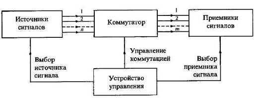 Коммутация сигналов — это метод, с помощью которого сигналы, поступающие от нескольких источников, объединяются в определенном порядке в одной линии. Затем происходит соответствующая их обработка, и сигналы при помощи другого коммутатора могут быть направлены в различные исполнительные устройства. Упорядоченный ввод и вывод сигналов осуществляется, как правило, при помощи адресации источников и приемников сигналов, а также связанных с передачей сигналов коммутаторов.