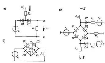 Рисунок 4. Схемы диодных ключей. а - на двух диодах; б - мостового диода; в – на шести диодах