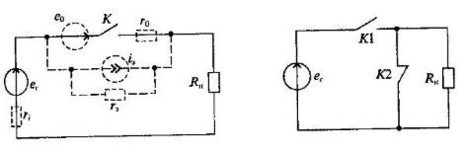 Рисунок 3. Схемы подключения источника к нагрузке при помощи: а – параллельного ключа; б – параллельно-последовательного ключа