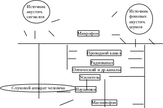 Структурная схема для иллюстрации прямого канала и канала с применением микрофона для перехвата акустической информации выглядит следующим образом: