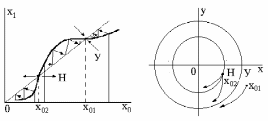 , т.е. колебания будут затухать (рис. 15б). Возьмем точку слева от цикла: