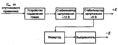 Устройство питания предназначено для обеспечения высокостабильного разнополярного относительно корпуса напряжения питания, необходимого для нормального функционирования всех узлов конвертора. Напряжение питания +12 В относительно корпуса подается на конвертор с приемного устройства по центральной жиле коаксиального соединительного кабеля.
