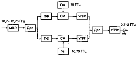 Рисунок.. 4.15. Функциональная схема полнодиапазонного конвертора с одним МШУ