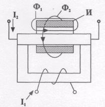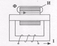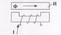 | Пропусканием через изделие электрического и магнитного потока от электромагнита |