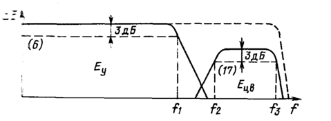 В канале записи из ПЦТС при помощи фильтров выделяется сигнал яркости и сигнал цветности. АЧХ фильтров изображены на рис. 3, где