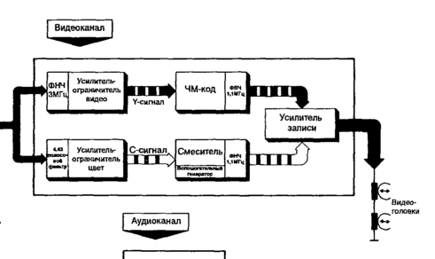 Физические процессы, протекающие при магнитной записи сигналов изображения (видеосигналов), такие же, как при записи звуковых сигналов. Однако, отличие характеристик этих сигналов вынуждает изменять технические решения при конструировании видеомагнитофонов.