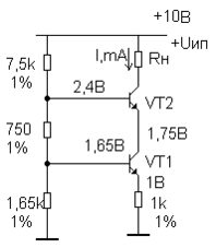 Одна из наиболее простых схем ИТ с температурной компенсацией рабочей точки представлена на рис. 2.
