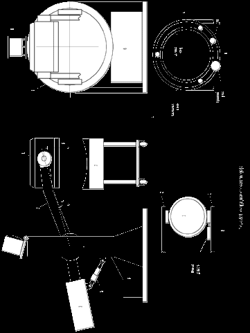 На рис.6, б, в показаны узлы привода углового перемещения детекторной головки и коромысла. В статическом режиме и режиме сканирования детекторная головка с высокой точностью должна устанавливаться параллельно горизонтальной плоскости. Эта установка производится посредством шагового двигателя через многоступенчатый редуктор и соответствующего датчика углового положения (ДУП). Круговое вращение осуществляется с помощью системы вложенных колец – подвижного и неподвижного. К подвижному кольцу крепится правый шарнир актуатора Высота подъема, а при томографировании – орбитальный радиус R, вычисляется по формуле R = Lsinα , где L – расстояние между осями вращения коромысла и детектора. Угол α измеряется соответствующим датчиком углового положения.