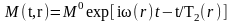 Если формировать статический градиент G во время наблюдения сигнала, частота колебаний намагниченности начинает зависеть от r. Эта пространственная зависимость сказывается на характере выходного сигнала. Если сформировать градиентный импульс малой длительности ( << T1, T2), то в выражении (8) можно пренебречь величиной t/T2(r):
